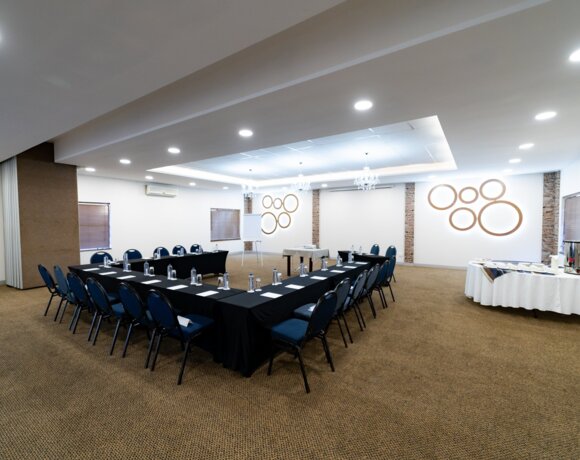 Layout Capacity: U-Shape: 150, Classroom: 100, Cinema: 120, Boardroom: 180